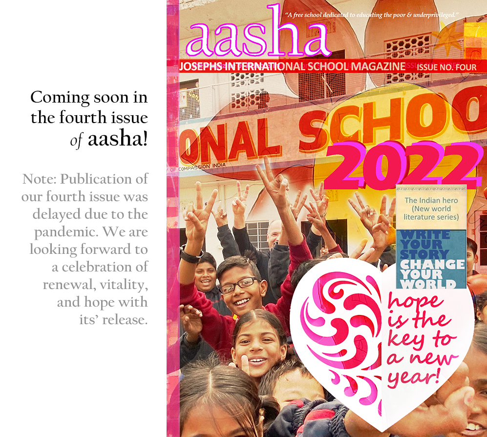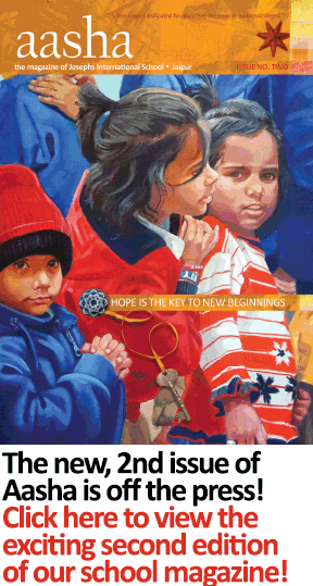 "Turn through the pages of this second edition and you will discover the heartbeat of our school in Jaipur, with perspectives from our students on life, aspirations, favourite music, food, what makes our city special, as well as articles from some of our friends outside India. Looking through Aasha's pages, you'll soon come to realize what makes the Josephs International School experience so unique and fulfilling."