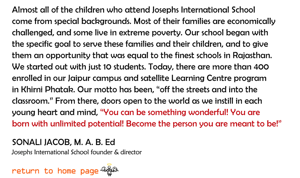 HOME PAGE    l    ABOUT JOSEPHS INTERNATIONAL    l     MESSAGE FROM THE DIRECTOR    l    PHOTO GALLERY  &  FRIENDS       CONTACT US